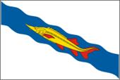 Вот его описание: «На серебряном поле щита прямоугольной формы – волнистая лазоревая перевязь, обремененная золотой стерлядью с червлёными глазами и плавниками. Герб увенчан трехзубцовой башенной короной».